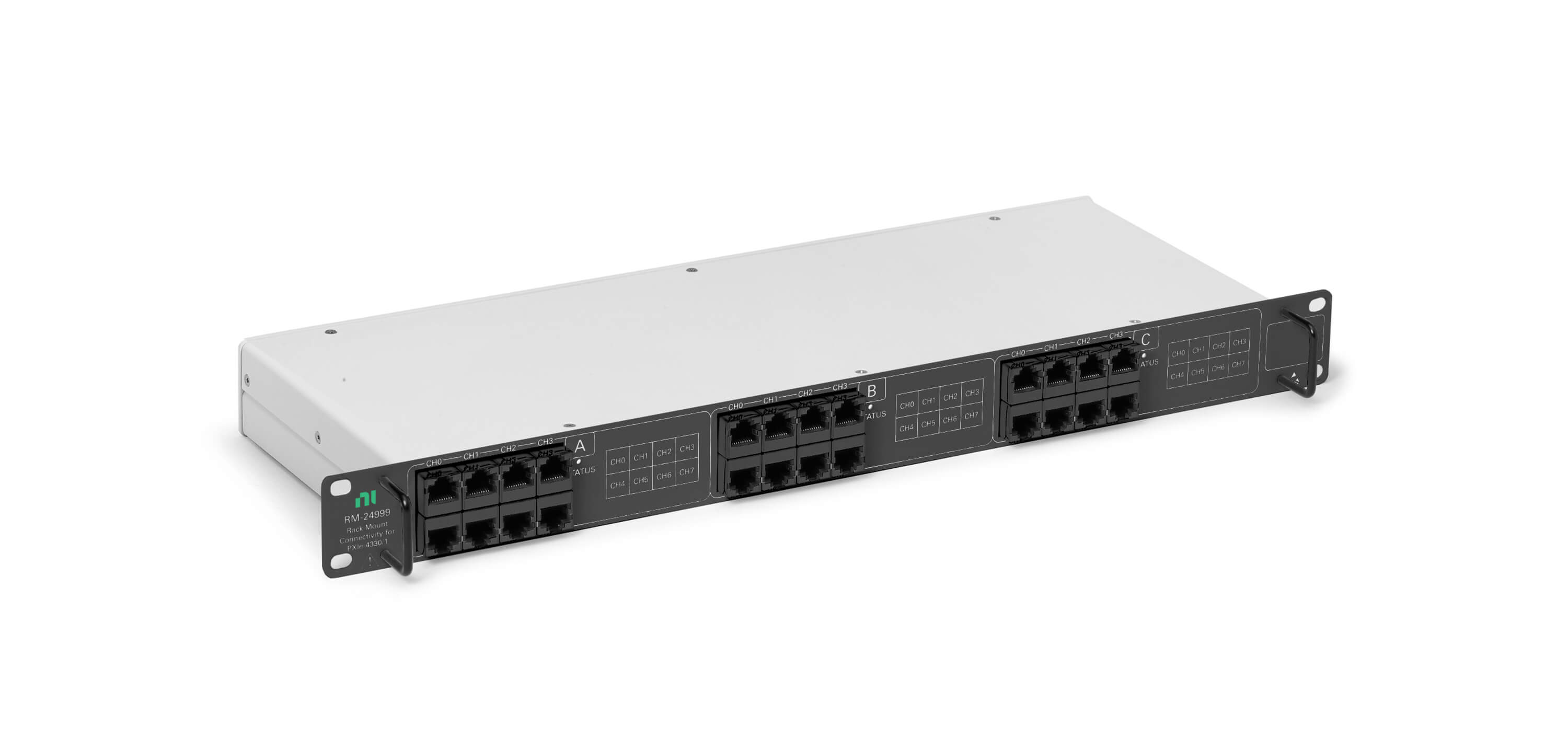 The team used style boards to quickly explore a wide variety of visual themes. By combining inspiration imagery with rough 2d mockups, NI was able to quickly get a ‘10 foot read’ that illustrated a range of color, pattern, and form styles. A simple CMF provides flexible solutions for a complex product family. The language of “Frame” is precise, geometric, and pure. Its bold combination of dark gray interfaces and wrapped white shells provides the user with a clear orientation and consistent interaction point. This consistency is key for nested devices such as server racks that house mulitple PXI modules, which in turn contain many PXI cards.